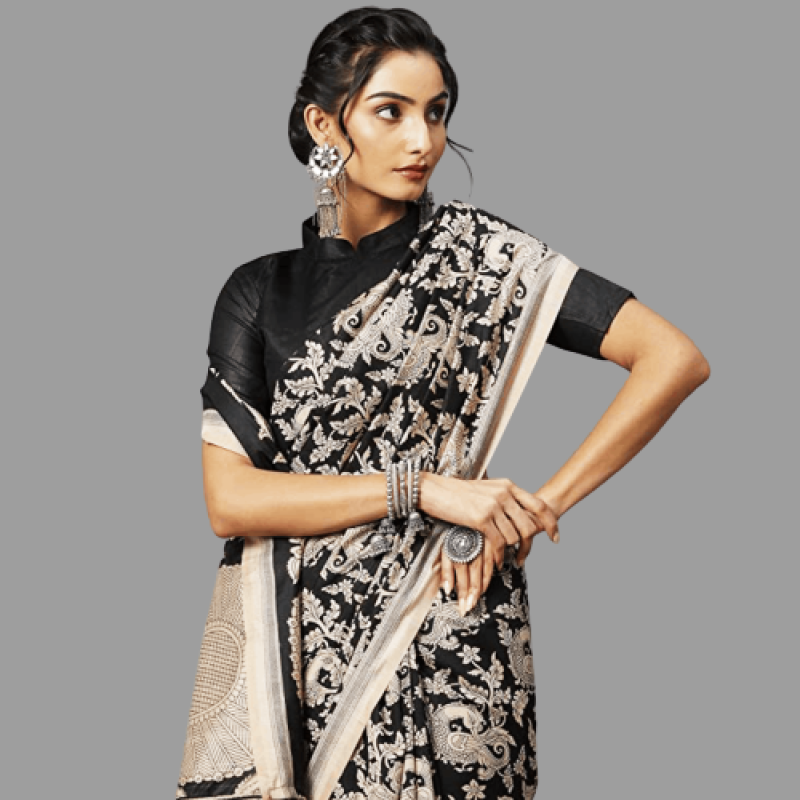 AKHILAM المرأة بهاجالبوري الحرير متقلب المطبوعة تانت ساري مع قطعة بلوزة غير مخيط
