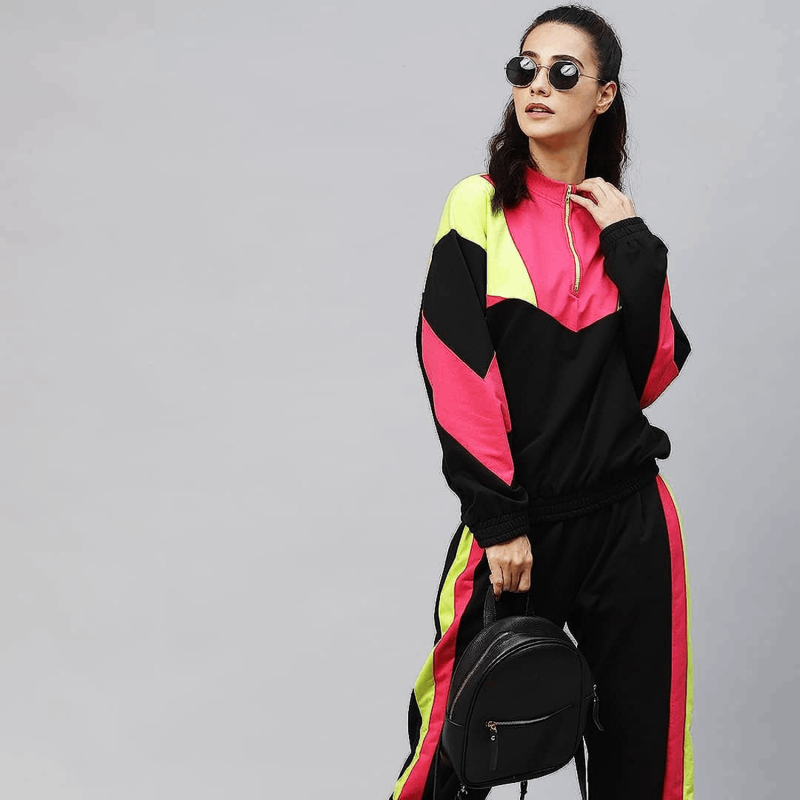 أسود ووردي اللون كتلة بدلة رياضية