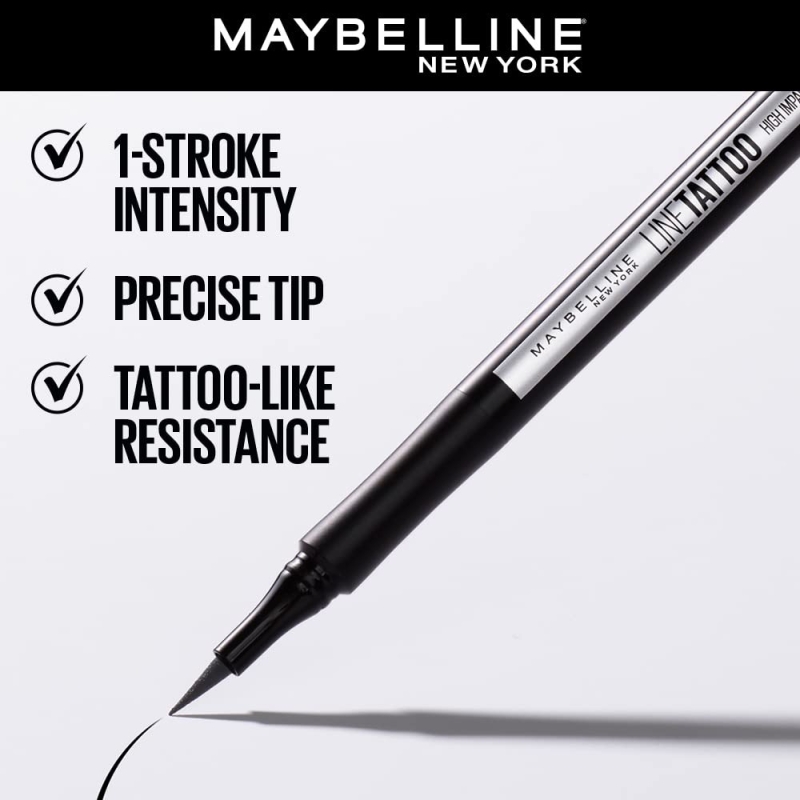 المحتويات: 1x مايبيلين نيويورك لاين وشم محدد عالي التأثير ، كحل مكثف ، طويل الأمد ، قضيب ذو طرف شعر ، أسود