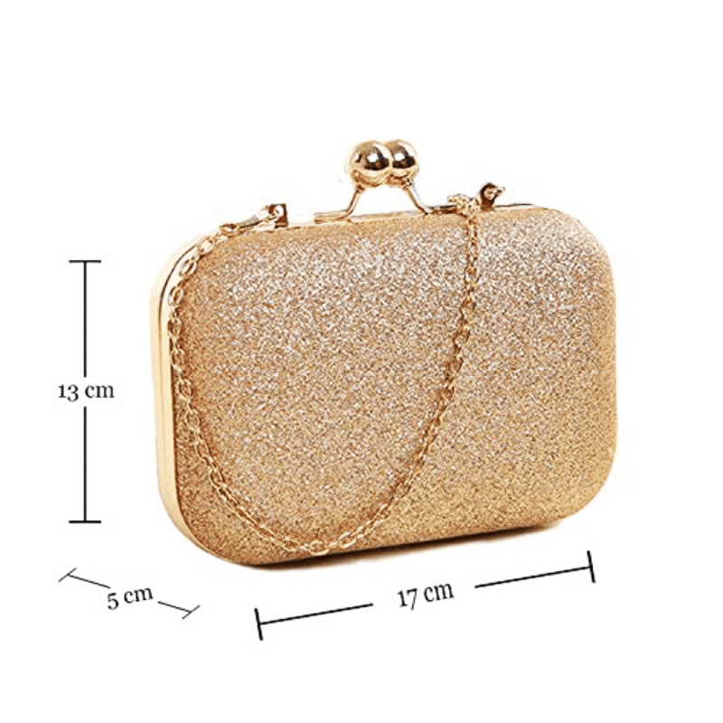 Synthetic material sparkling gold colored clutch