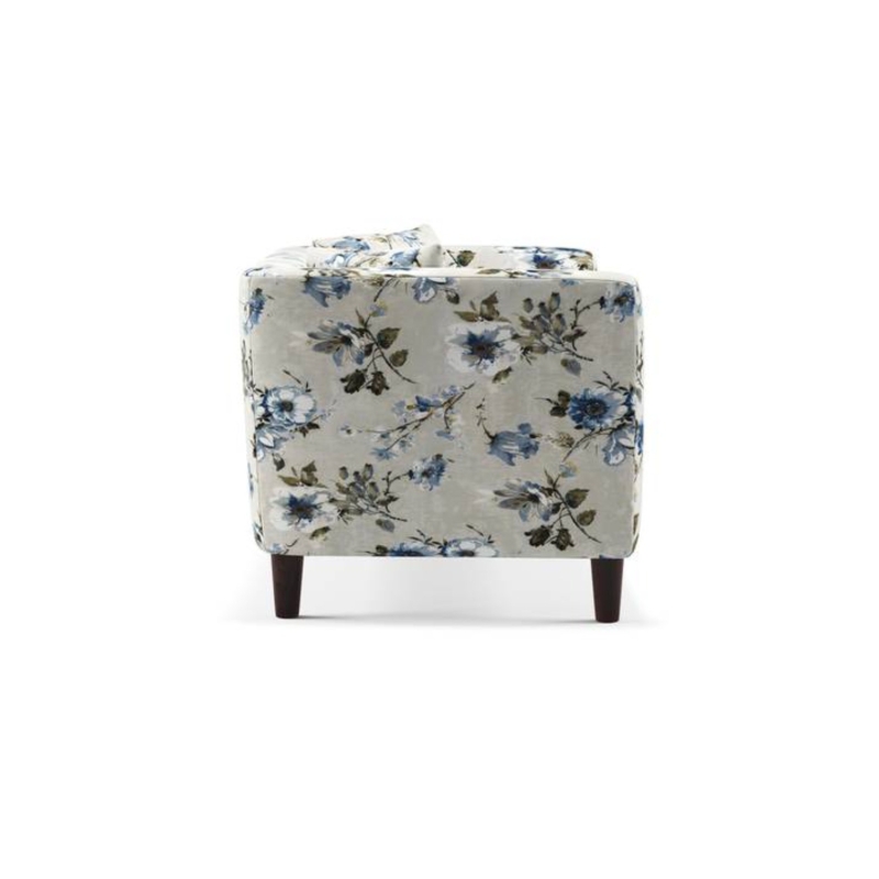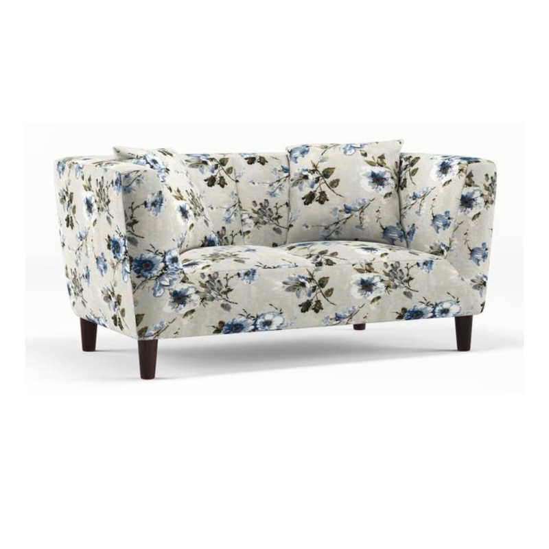 Seatheart. The luscious Janet loveseat is the perfect place to cosy up or unwind. Designed for comfort, the straight lines of the frame are softened by the plush cushioning. The piping all around helps define the petite sofa for two. Available in two delicious colours and a soft floral print, it’ll be at home in living rooms and bedrooms.