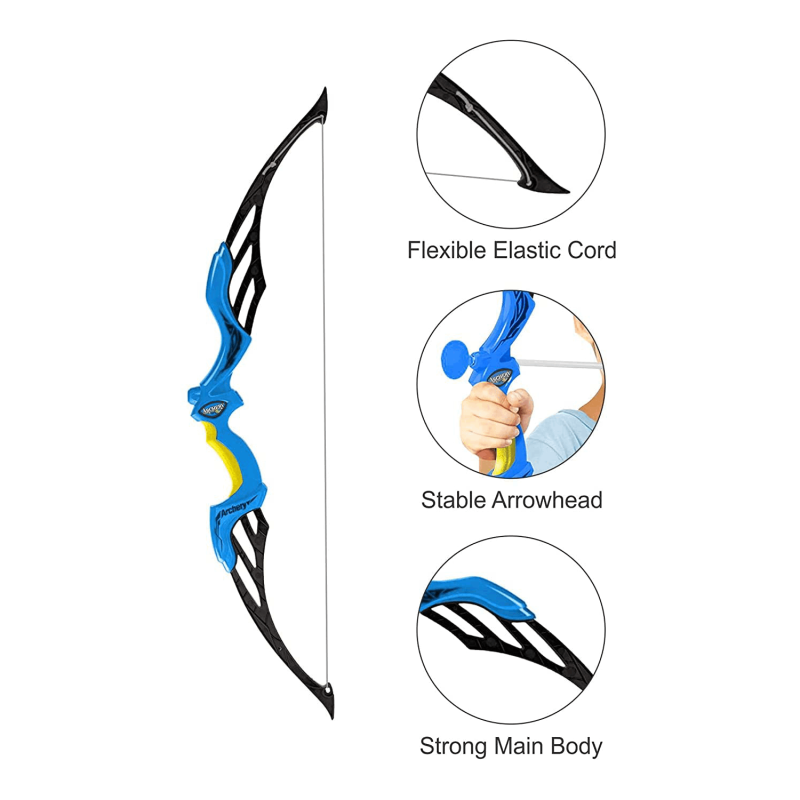 High Quality And Safe Material - The bow and arrow kit is made of durable ABS plastic, the bow is fixed with double screws, solid, firm and durable. Able to withstand multiple hours of use without breaking.