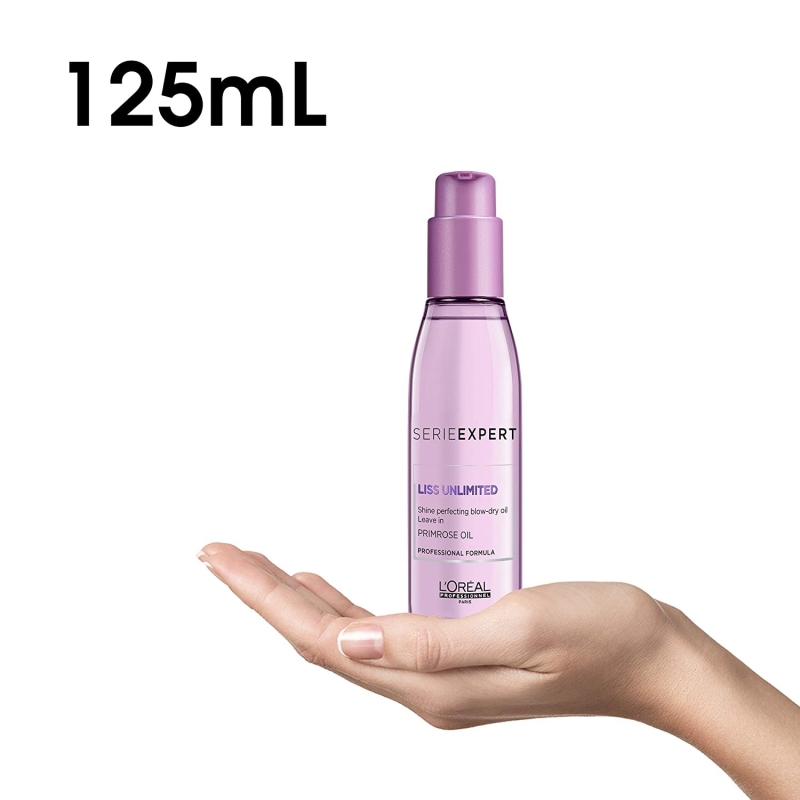 Expert smoothing serum to tame frizzy hair and add shine. The L’Oréal Professionnel Serie Expert Liss Unlimited Shine Perfecting Blow-Dry serum, infused with the power of evening primrose, provides a long-lasting, anti-humidity shield that controls rough hair and keeps it frizz-free. This light expert formula gives hair fabulous shine and smoothness.