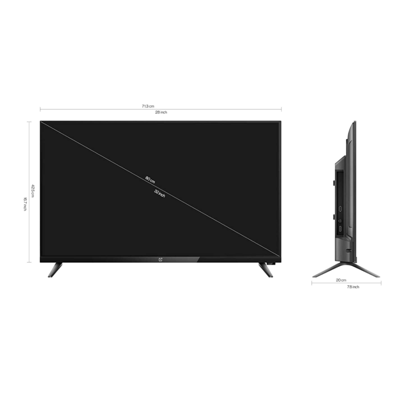 • Connectivity: 2 HDMI ports to connect a set-top box, Blu-Ray players, gaming console | 2 USB ports to connect hard drives and other USB devices, Dimensions(TV With Stand) - 71.3cm*20cm*46.9cm, VESA Hole Pitch - 20cm*20cm