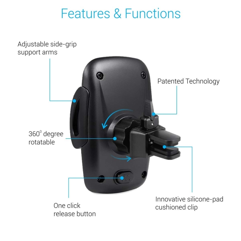 CLAMP X: a patented Universal Mobile Holder with a cradle to hold any Smartphone up to 6 inches in the car AC Air Vent