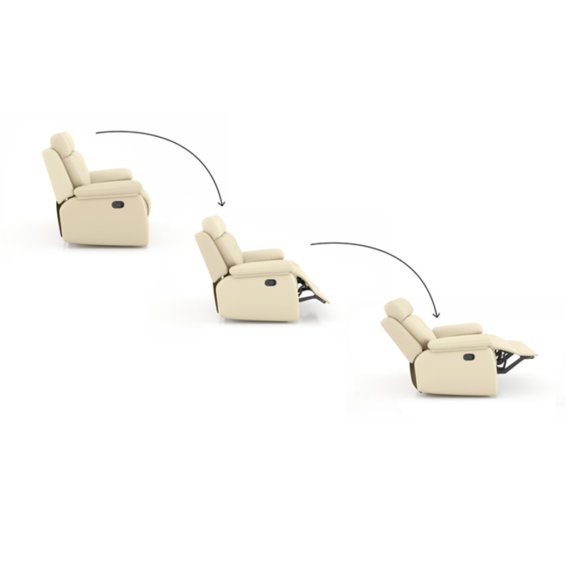 A perfect blend of style and functionality, this transitional style 3 position manual recliner comes with a smooth glide mechanism, puffed armrests and a cushioned headrest that will help you relax and stretch in comfort.
