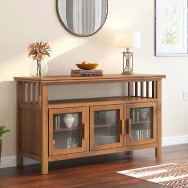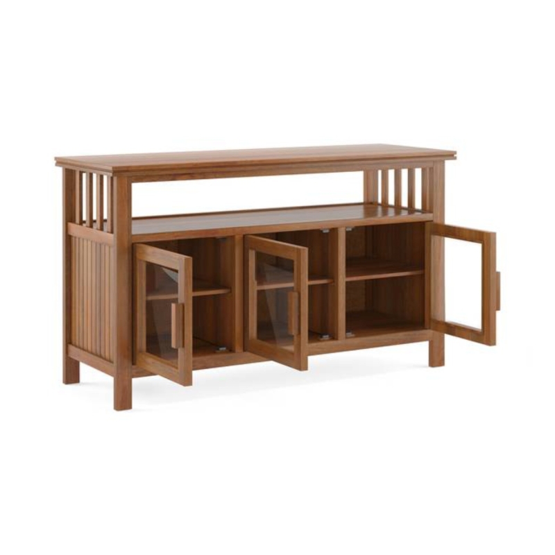 Taking the high road.The Rhodes sideboard is the perfect mix of classic style and versatile storage. Be it in the dining room or hallway, this is at home anywhere. We love the textured side panels, which subtly elevate the design. The open shelf and tabletop have plenty of display space. Use the glass front cabinets to stow away crockery, appliances, and glassware.