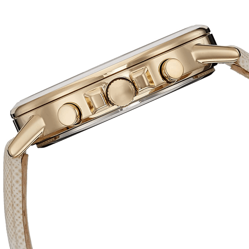 Band Color: Beige, Band Material: Leather; Water Resistance: 3 ATM